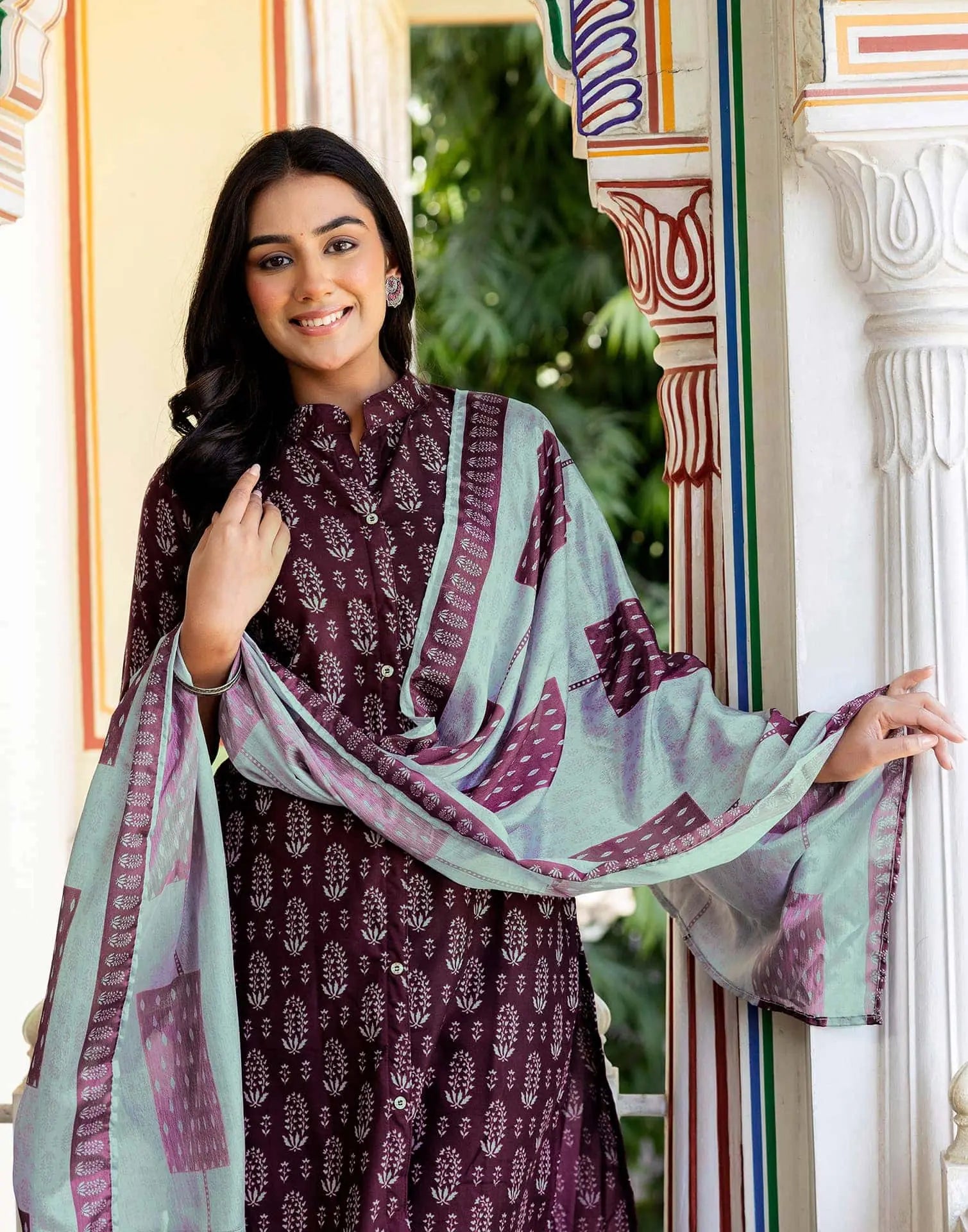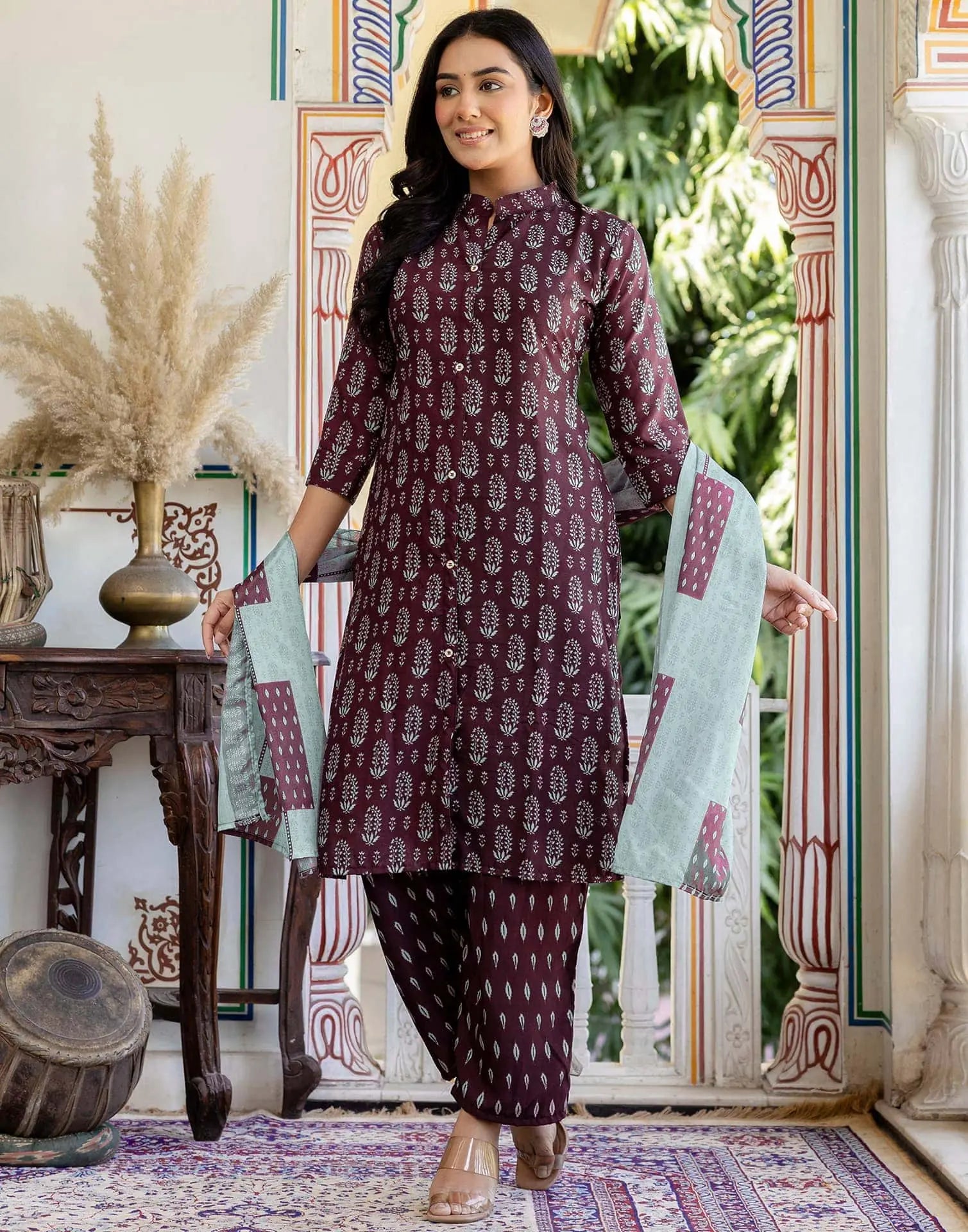 Rayon Printed Straight Kurta with Pant & Dupatta