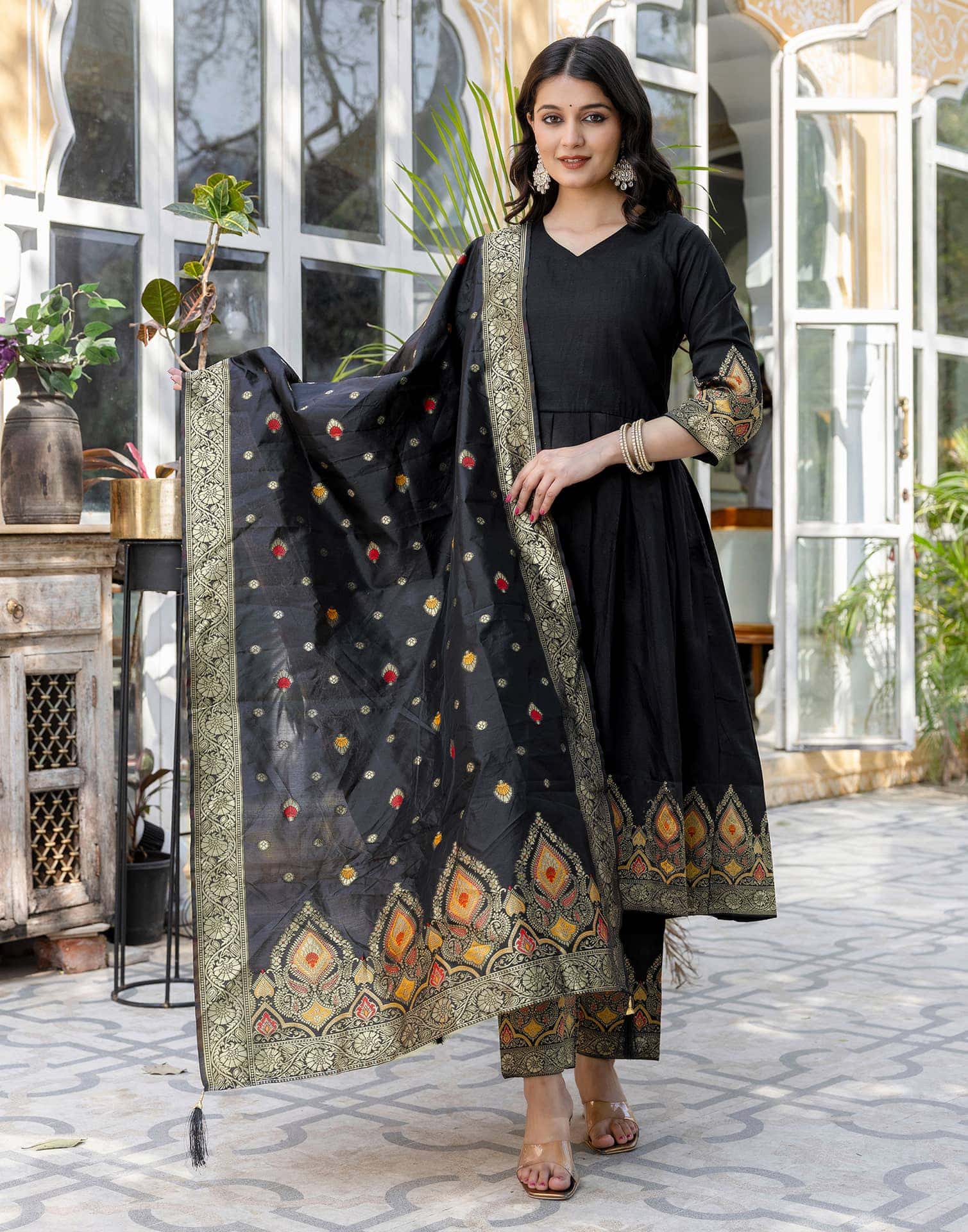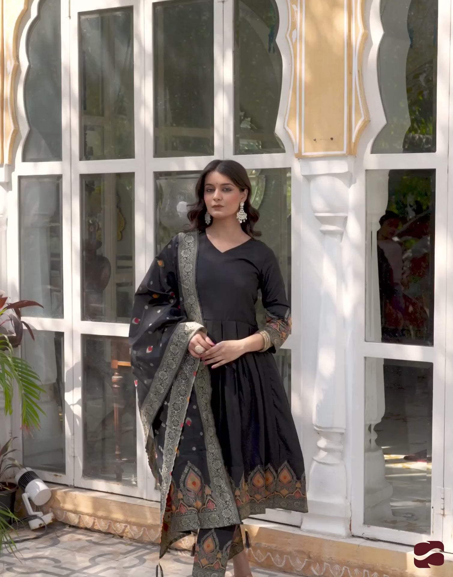 Rayon Weaving Anarkali Kurta with Pant & Dupatta