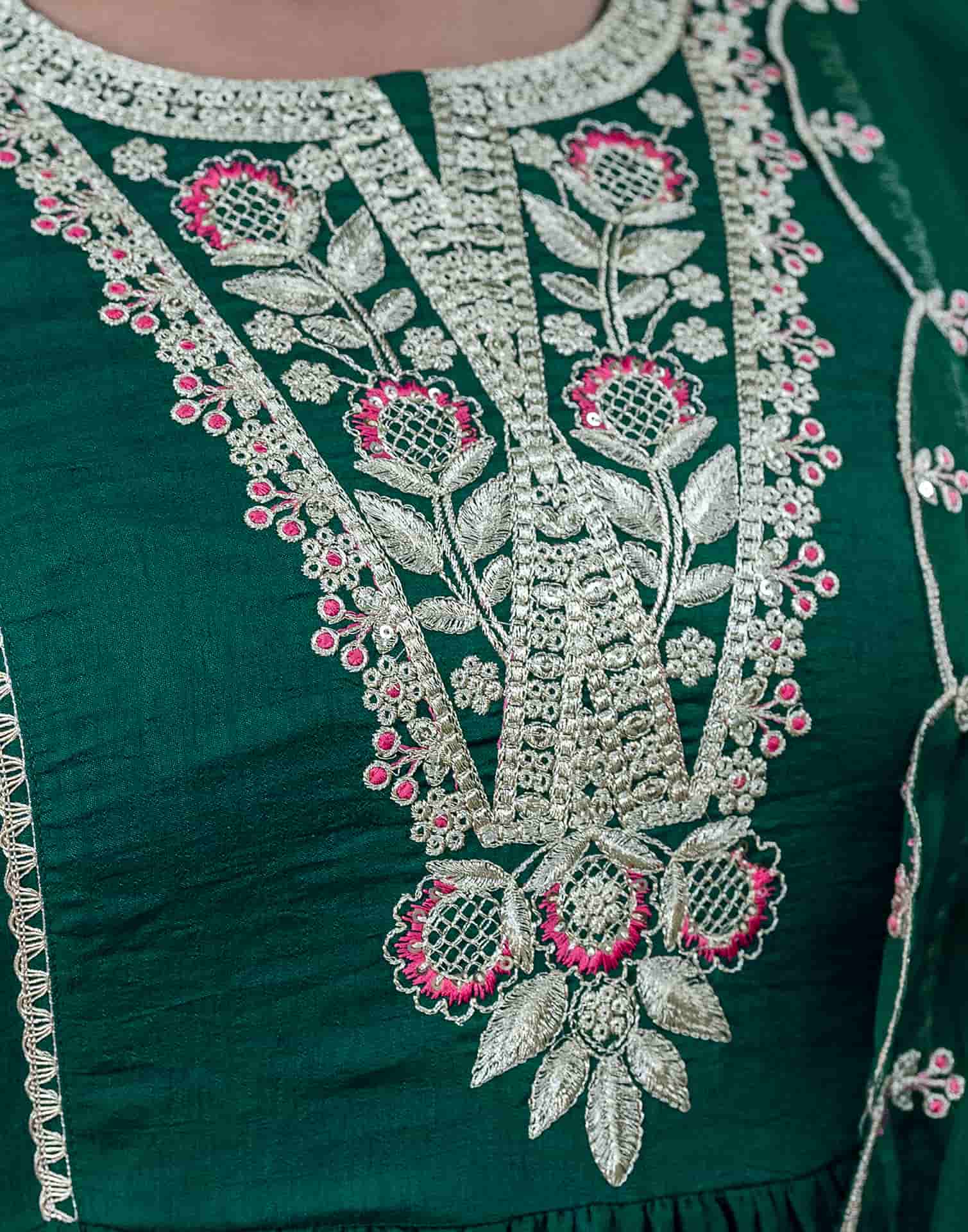 Silk Blend Embroidered Anarkali Kurta with Pant & Dupatta