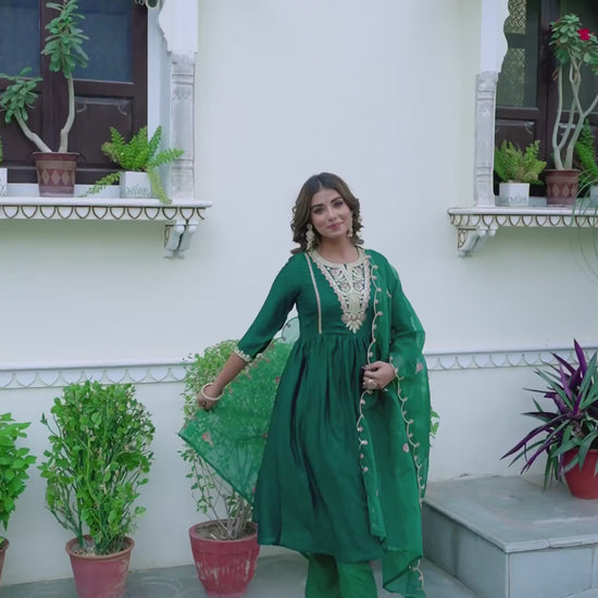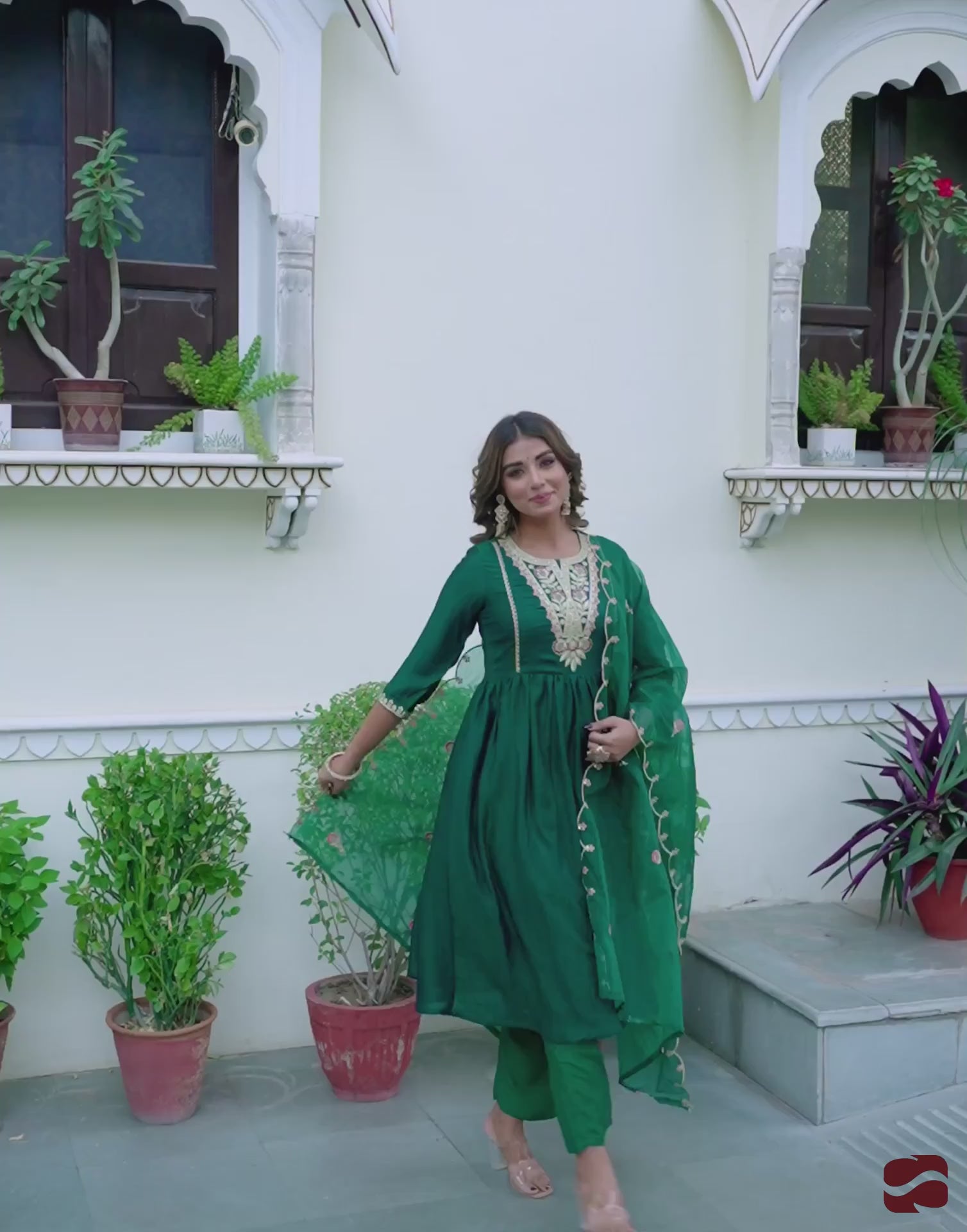This Green Silk Blend kurta set with Embroidered is crafted for women who love Indian wear with a modern twist. The kurta’s Round Neck and graceful cut enhance its style, while Pant and dupatta complete the ensemble. Designed for Festive Wear, it promises premium fabric, comfortable wear, and lasting appeal. High-quality Fabric, Lightweight Fabric, Comfortable Fit.
