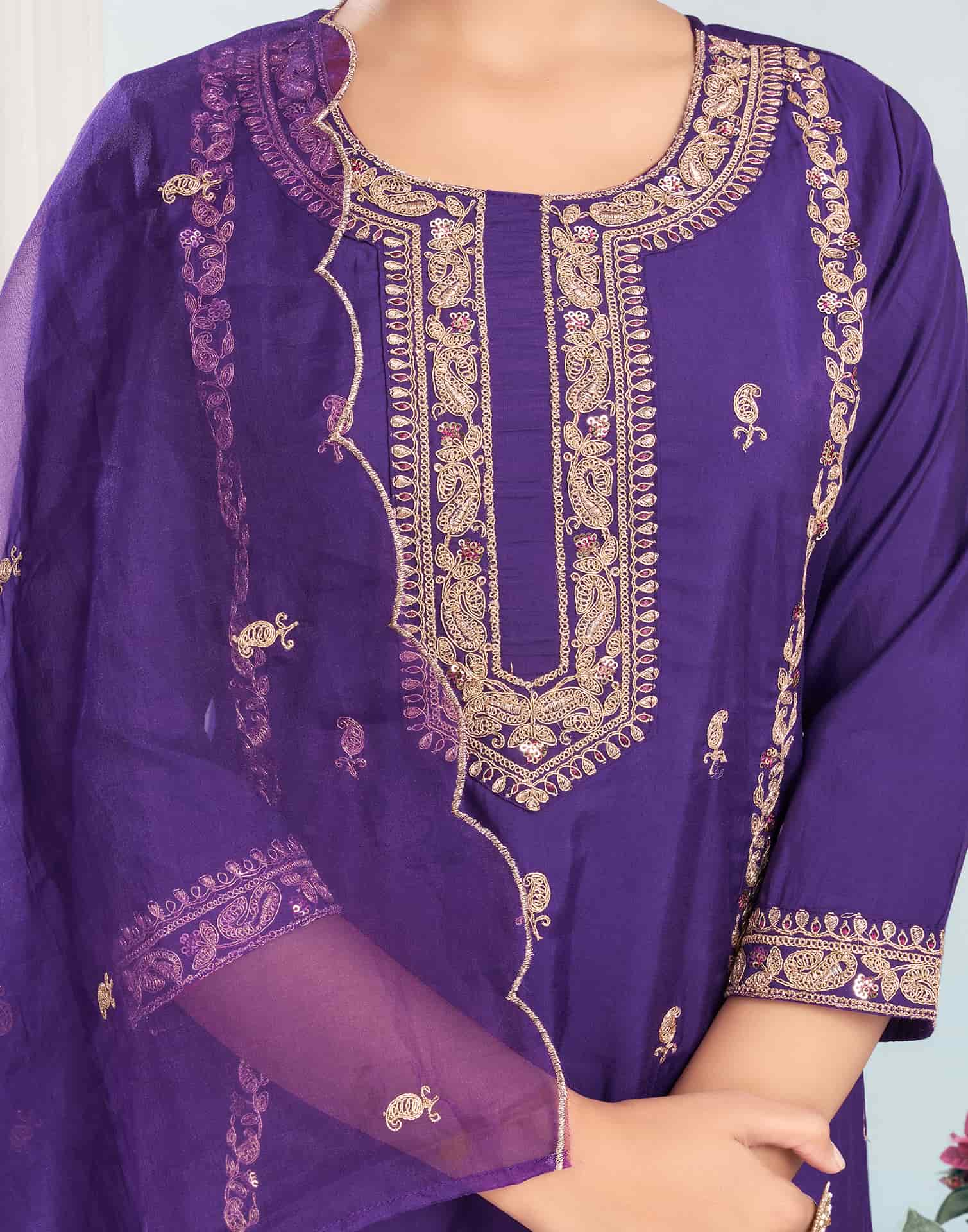 This Purple Silk Blend kurta set with Embroidered is crafted for women who love Indian wear with a modern twist. The kurta’s Round Neck and graceful cut enhance its style, while Pant and dupatta complete the ensemble. Designed for Festive Wear, it promises high-quality fabric, all-day comfort, and lasting appeal. Elegant Dupatta, Traditional Occasion Outfit, Matching Bottoms.
