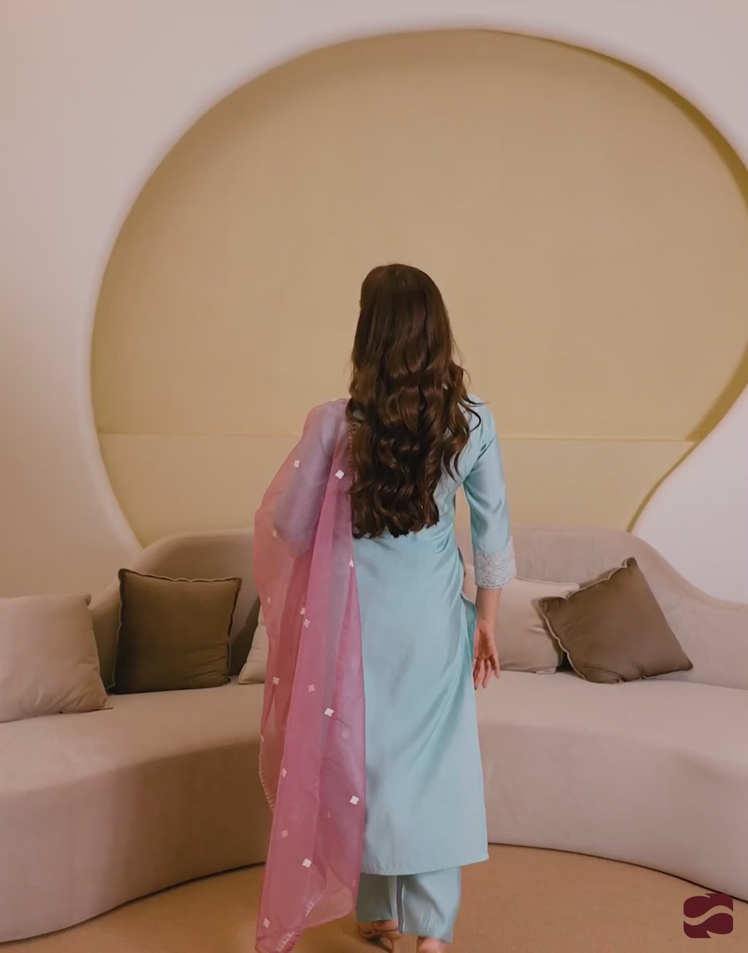 Silk Blend Embroidered Straight Kurta with Pant & Dupatta