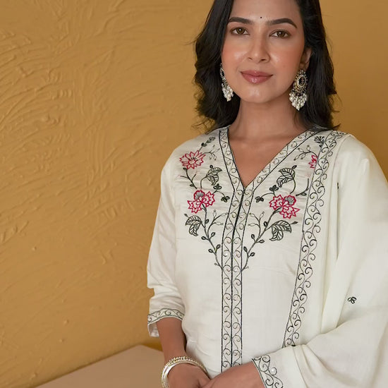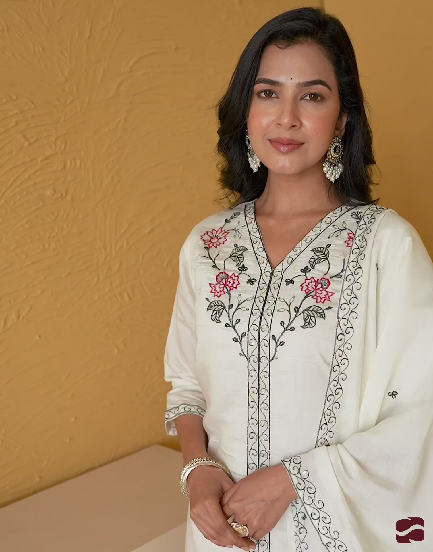 Silk Blend Embroidered Straight Kurta with Pant & Dupatta