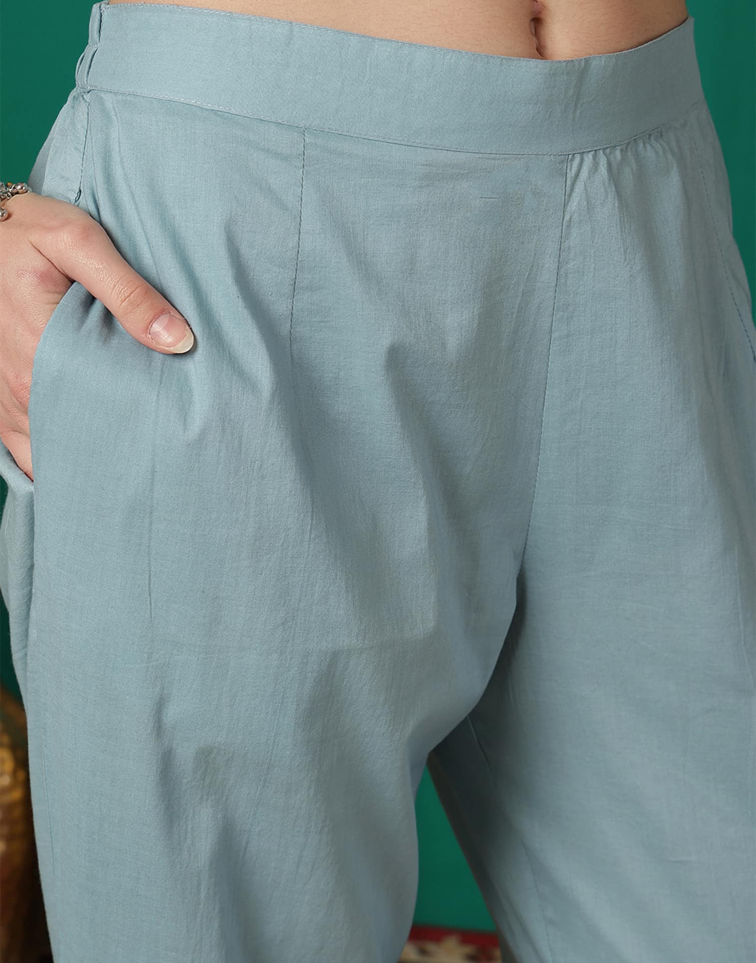 Refresh your ethnic collection with this Silk Blend kurta set in Blue. Highlighted by Embroidered and styled with a V-Neck, the kurta blends comfort with tradition. Teamed with Pant and dupatta, this outfit is perfect for Festive Wear. It guarantees comfortable wear, premium fabric, and the ease of an everyday ethnic wear. Traditional Outfit, Ethnic Wear for Women, Elegant Dupatta.