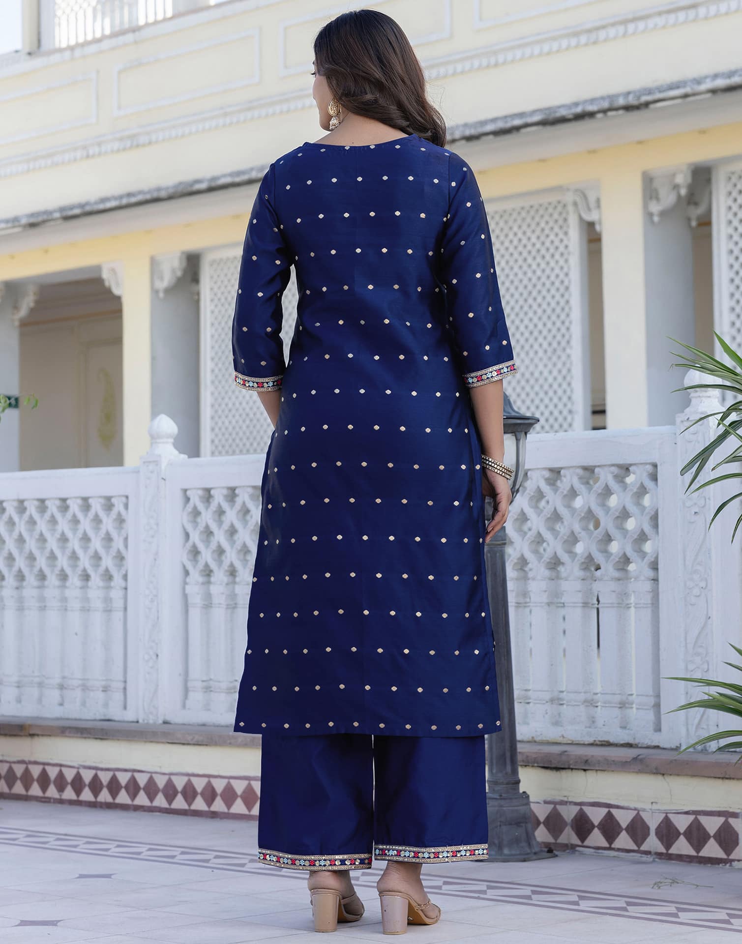 Silk Blend Embroidery and Sequins Work, Weaving, Lace Straight Kurta with Pant & Dupatta