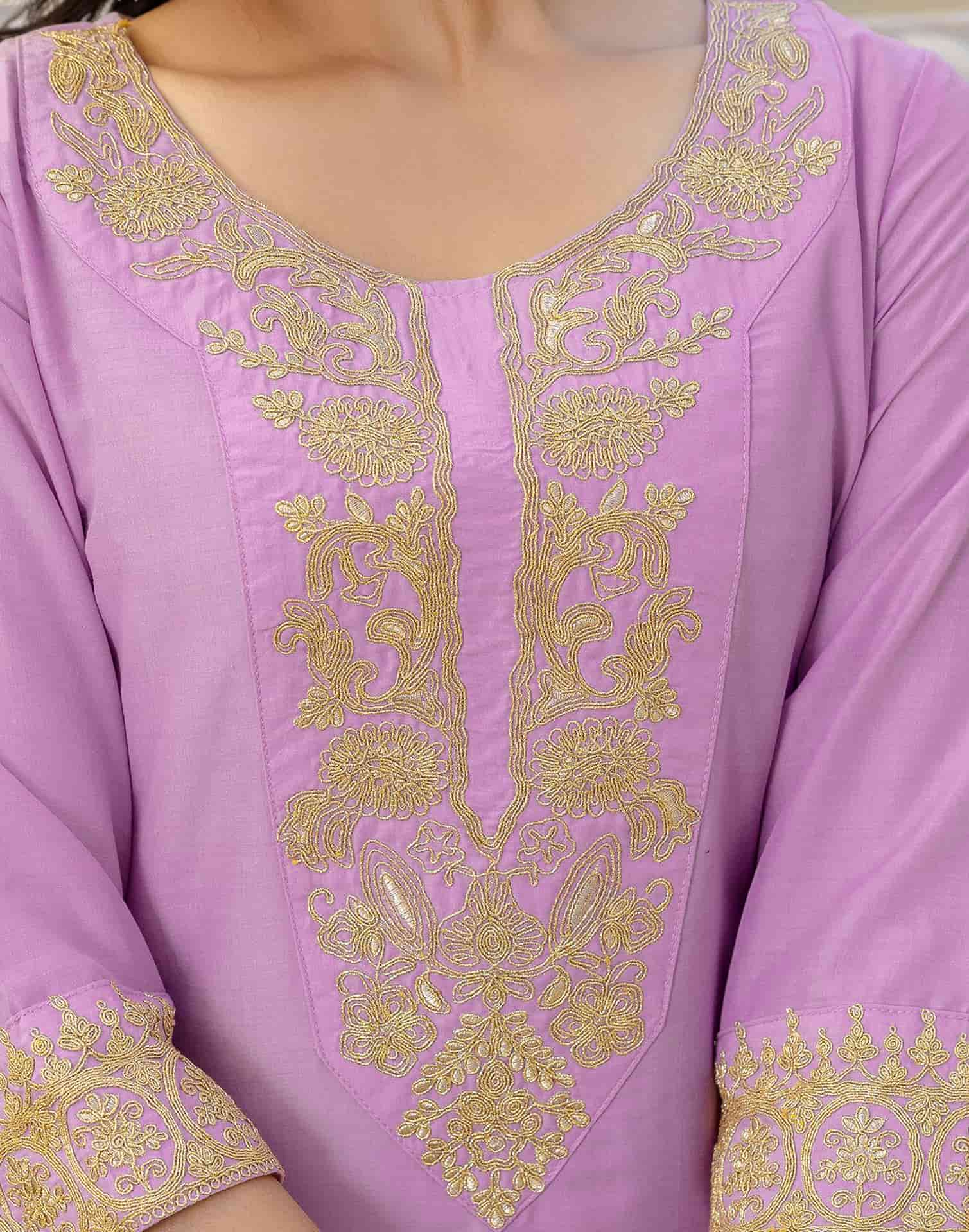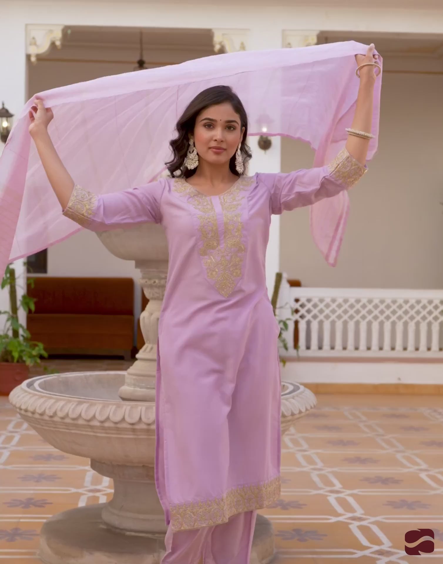 Crafted in Silk Blend with exquisite Embroidered, this Purple kurta set is an essential for your ethnic wardrobe. The kurta comes with a Round Neck, paired with Pant and dupatta for a complete look. Ideal for Festive Wear, it ensures ease of movement and premium fabric. A perfect choice for festive wear and traditional outfit lovers. Made in India, All-day Comfort, Kurta with Pant & Dupatta.
