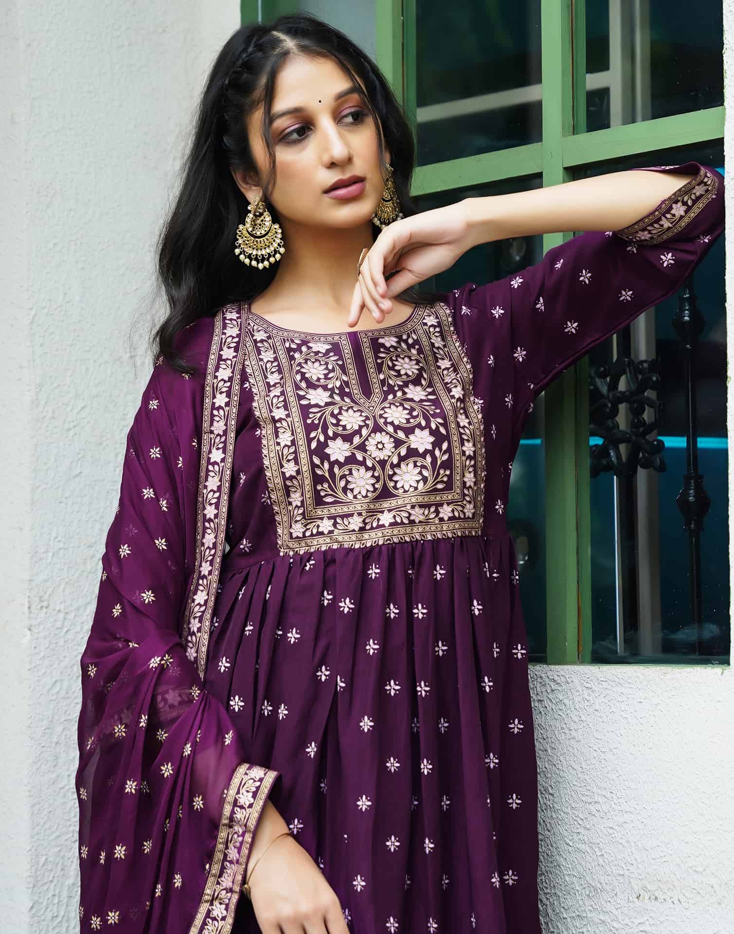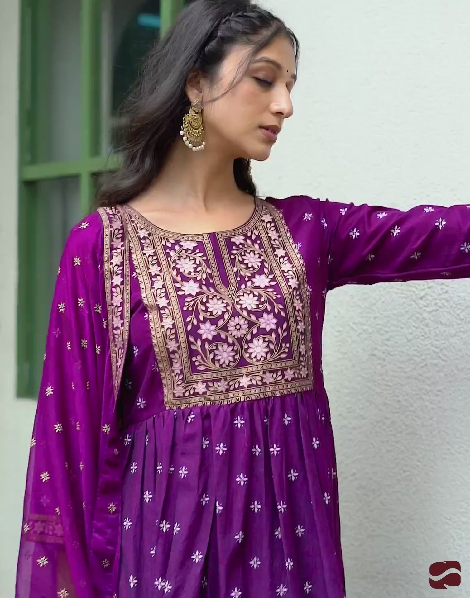 Crafted in Silk Blend with exquisite Printed, this Purple kurta set is an essential for your ethnic wardrobe. The kurta comes with a Round Neck, paired with Pant and dupatta for a complete look. Ideal for Traditional Occasion Outfit, it ensures all-day comfort and lightweight fabric. A perfect choice for festive wear and traditional outfit lovers. Complete Kurta Set, Family Function Wear, Traditional Occasion Outfit.