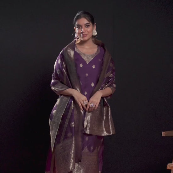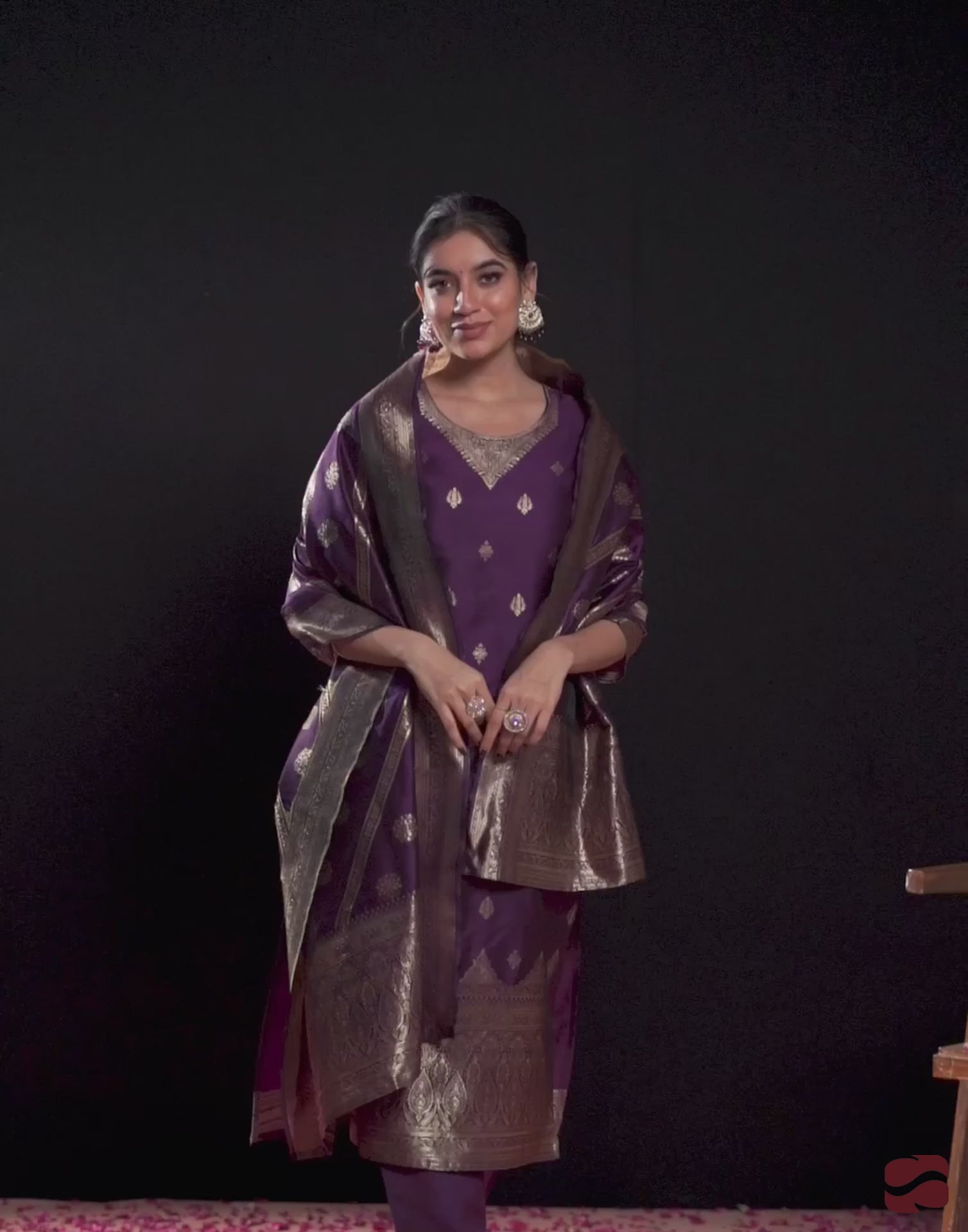 Silk Blend Jacquard Work Straight Kurta with Pant & Dupatta