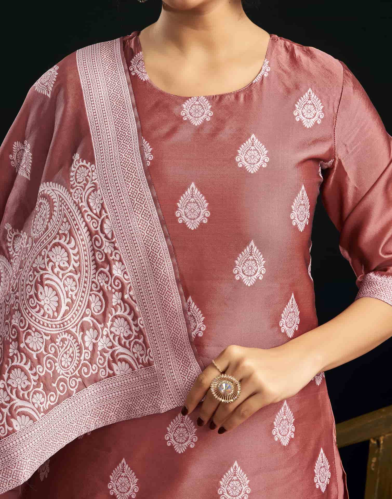 Silk Blend Jacquard Work Straight Kurta with Pant & Dupatta