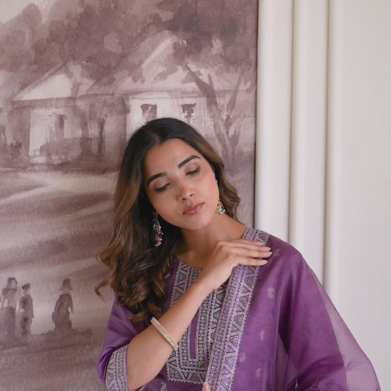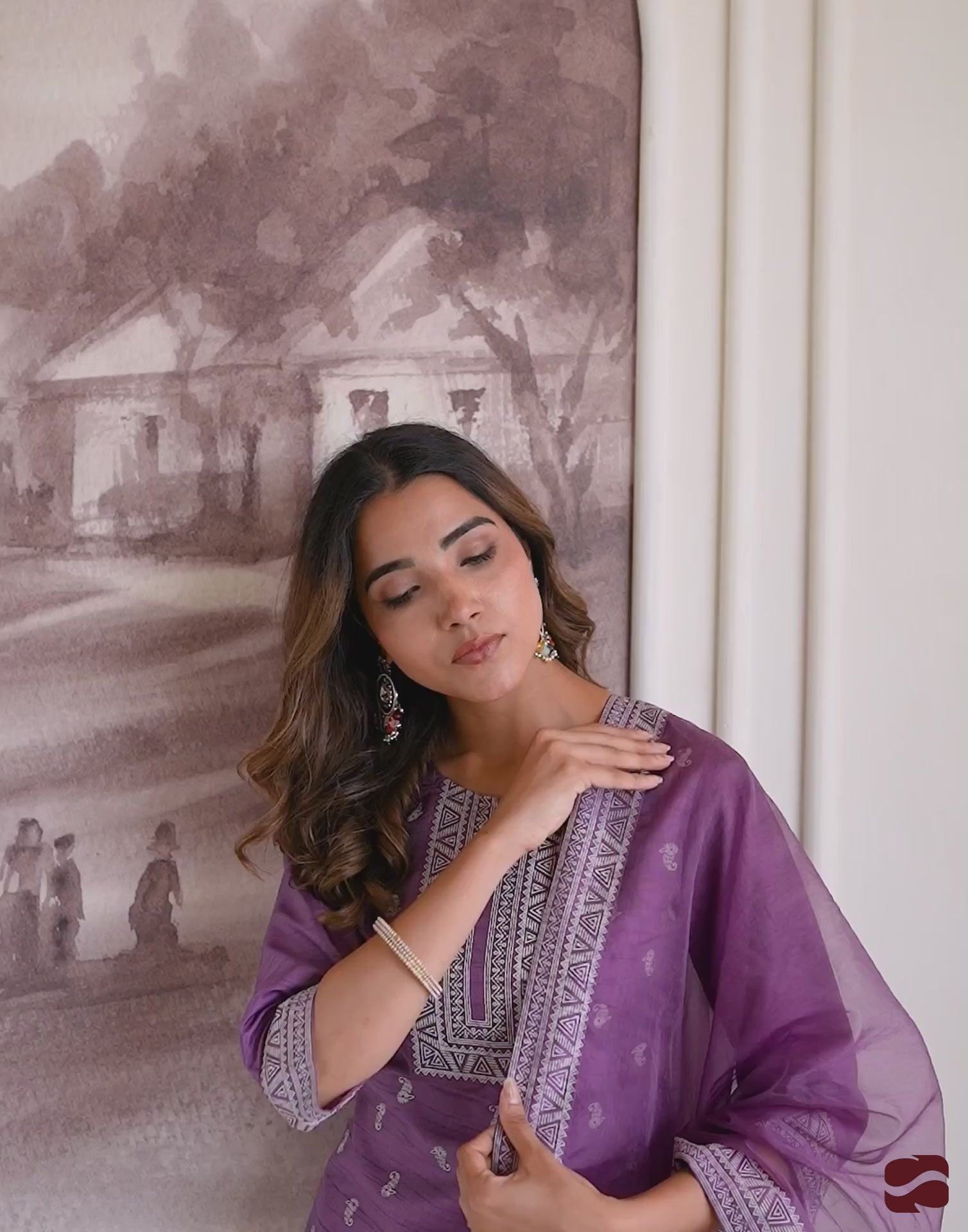 Silk Blend Printed Straight Kurta with Pant & Dupatta