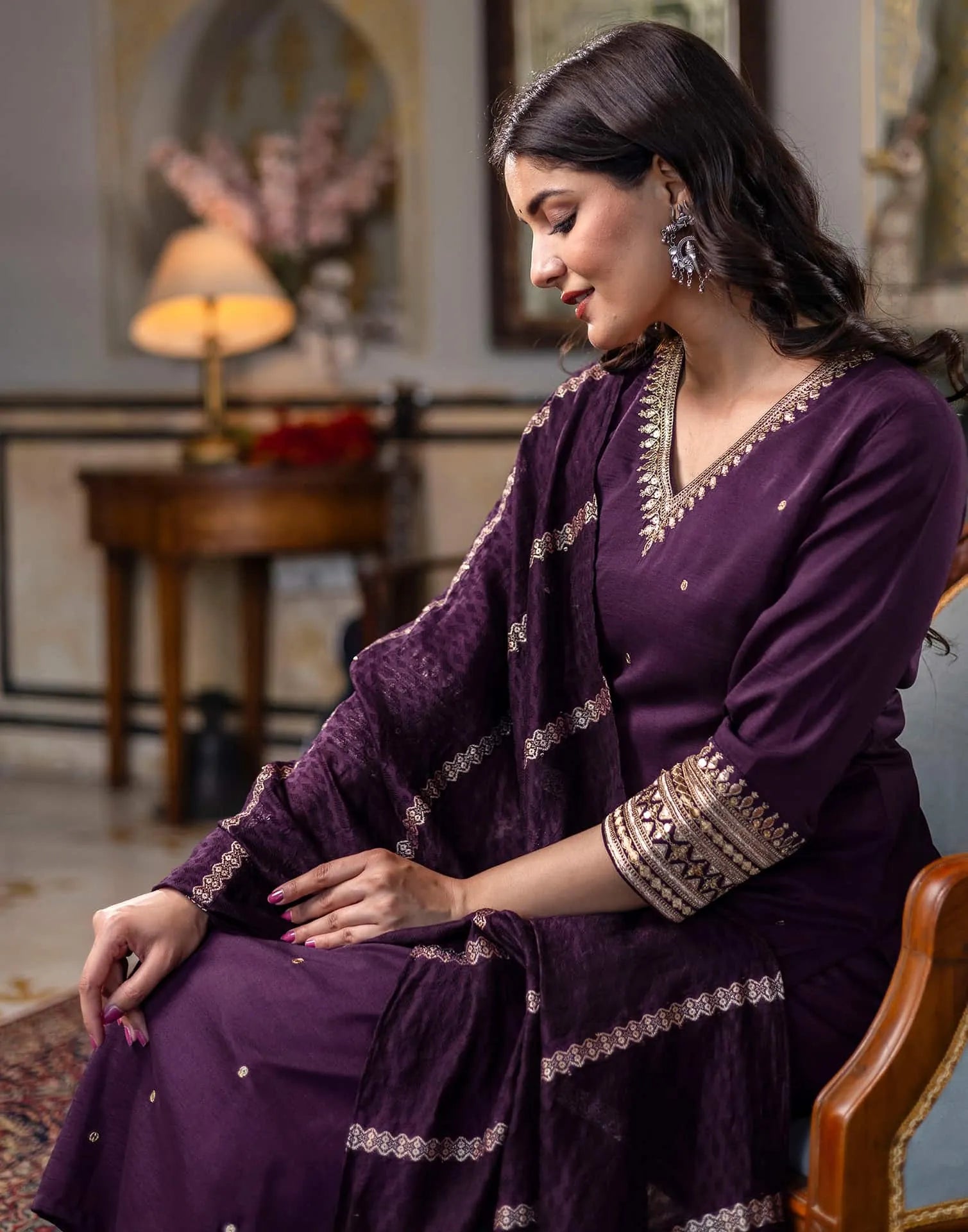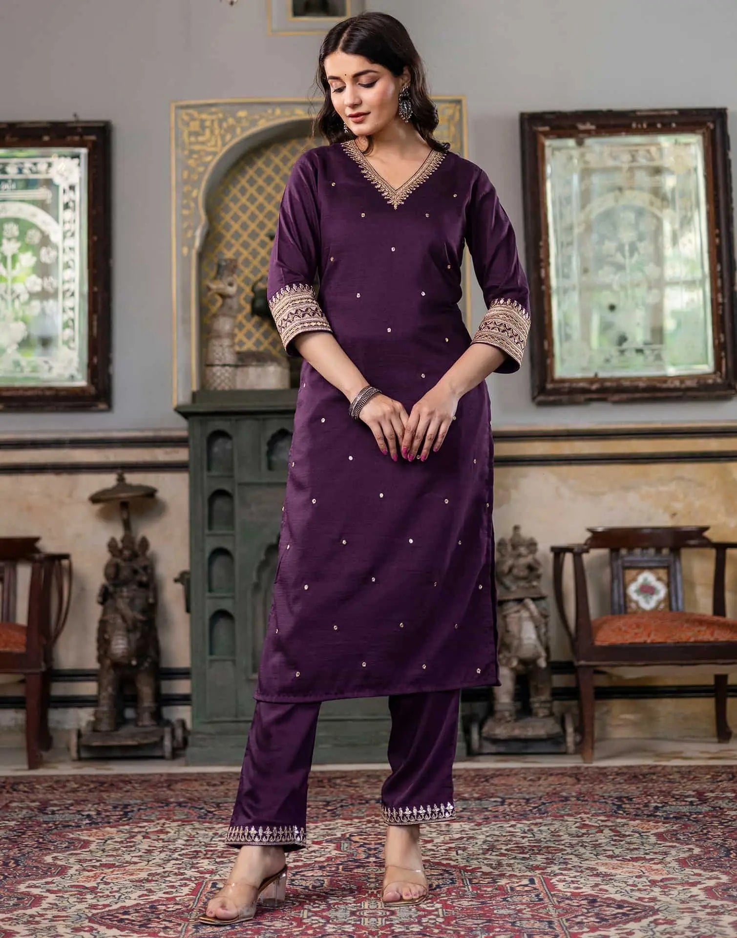 Silk Blend Sequence and Embroidery Work Straight Kurta with Pant & Dupatta