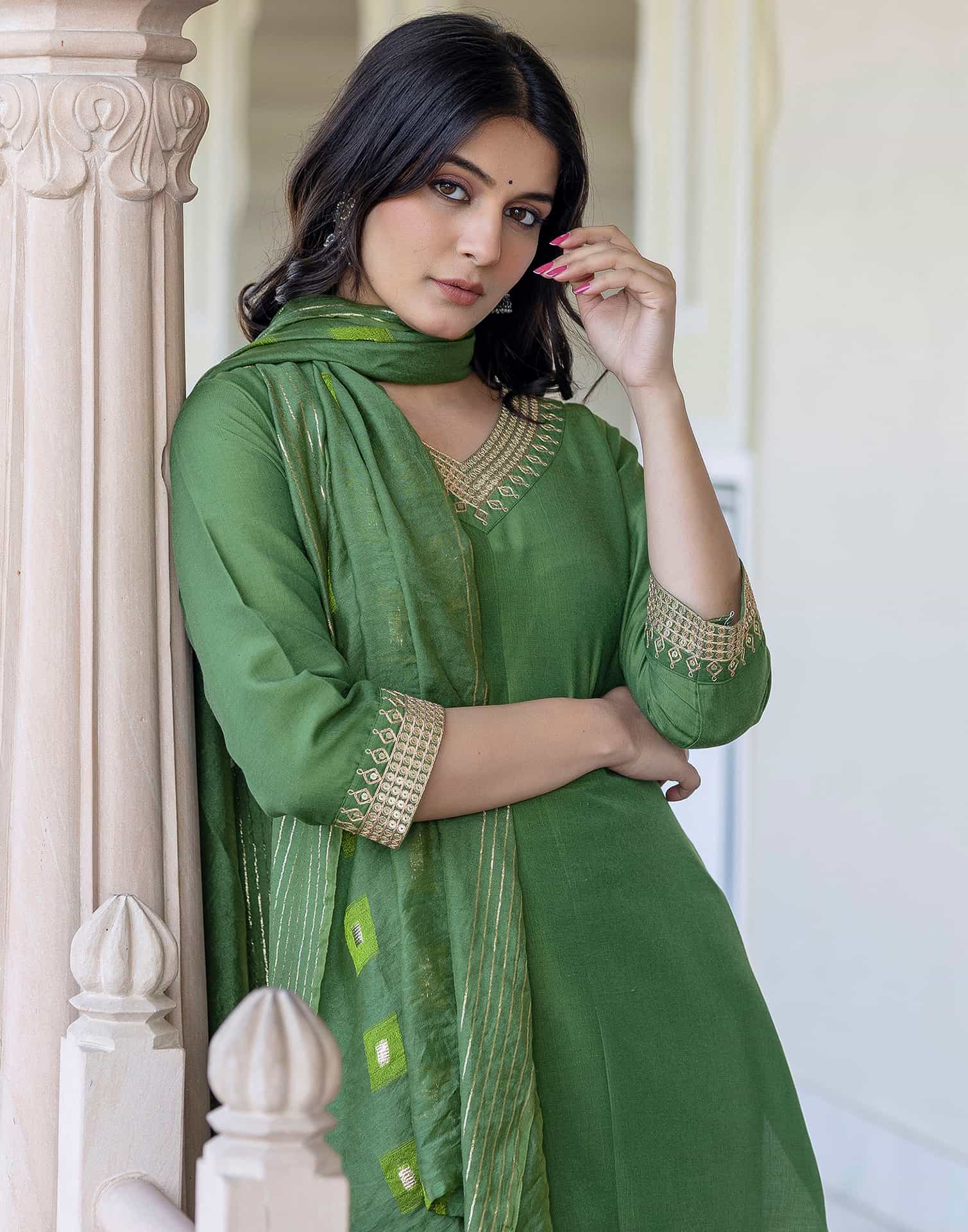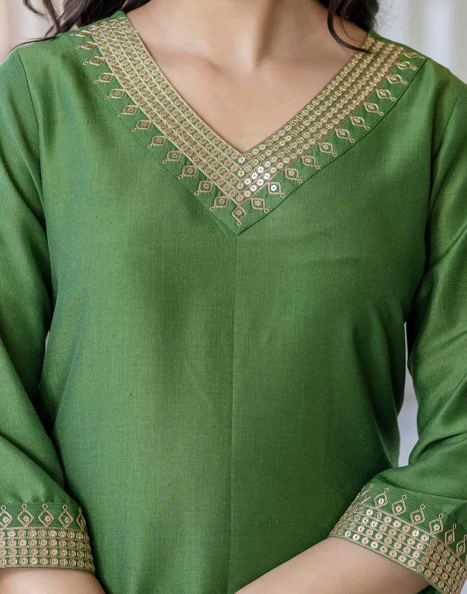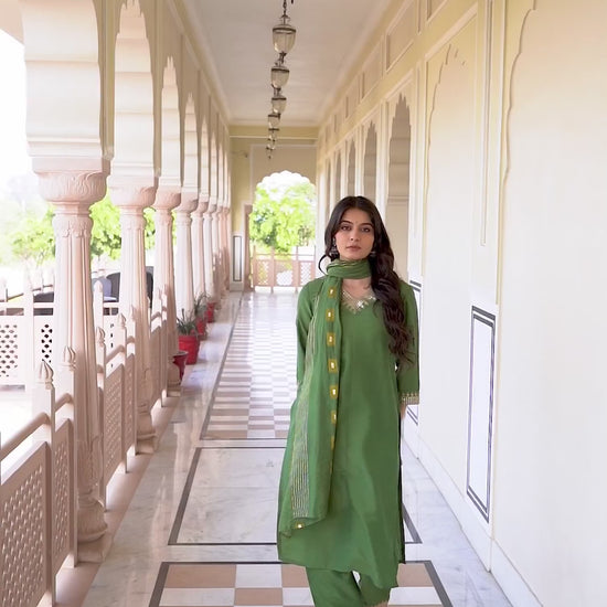 Step into sophistication with this Green Silk Blend kurta set adorned with Embroidered. The kurta features a V-Neck for a refined look, paired with Pant and dupatta. Perfect for Festive Wear, it delivers all-day comfort, high-quality fabric, and effortless style. Comfortable Fit, Semi-formal Wear, High-quality Fabric.