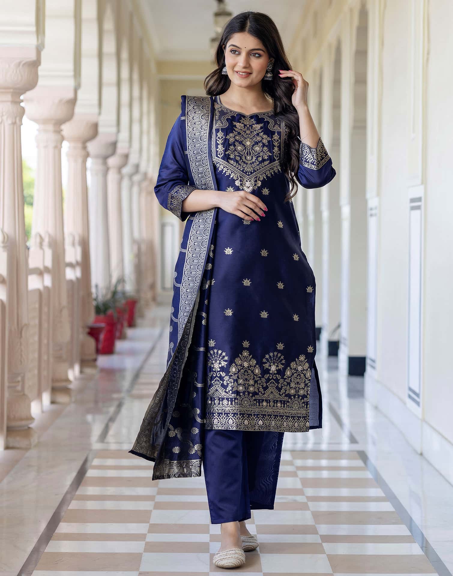 Silk Blend Weaving Straight Kurta with Pant & Dupatta