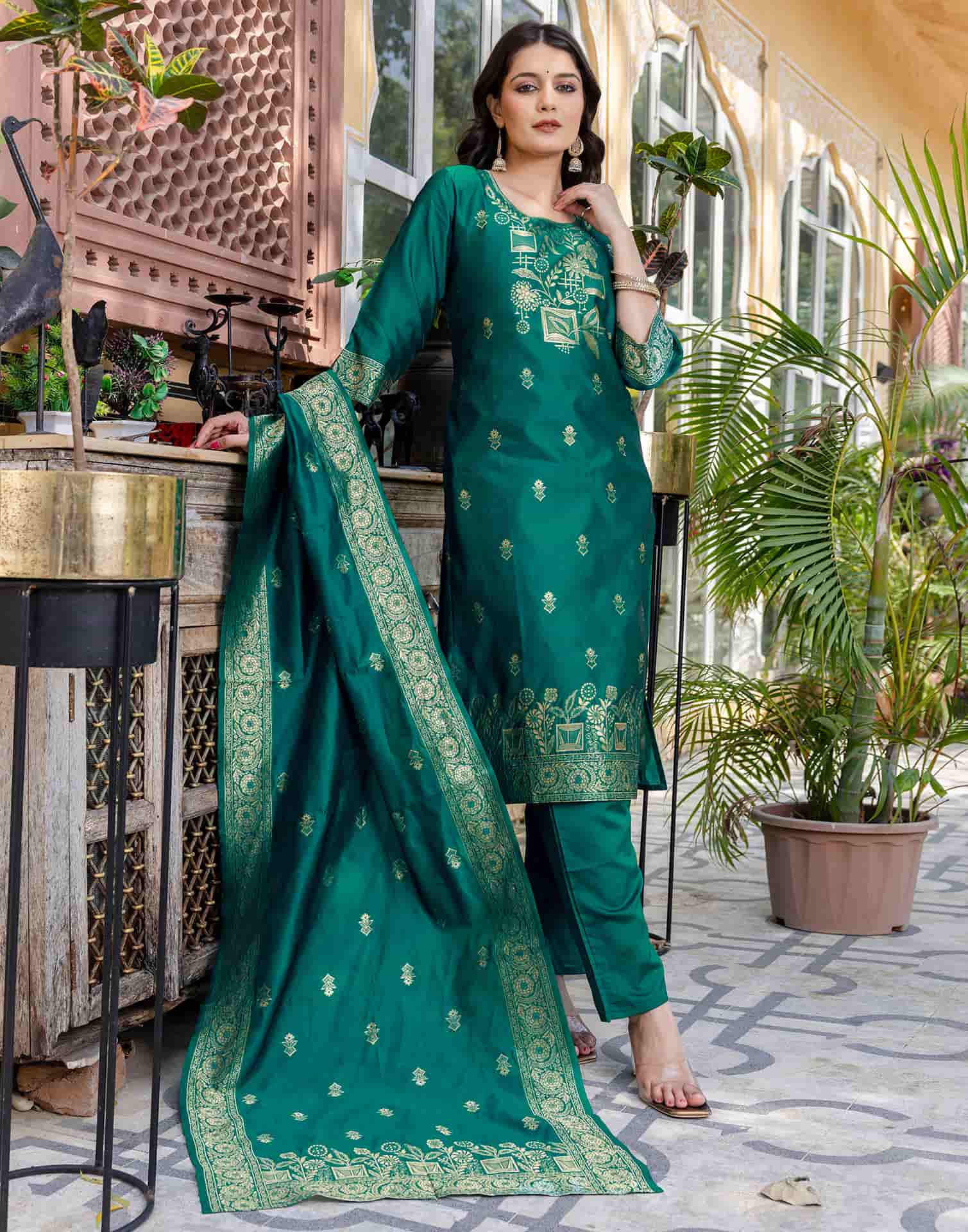 Silk Blend Weaving Straight Kurta with Pant & Dupatta