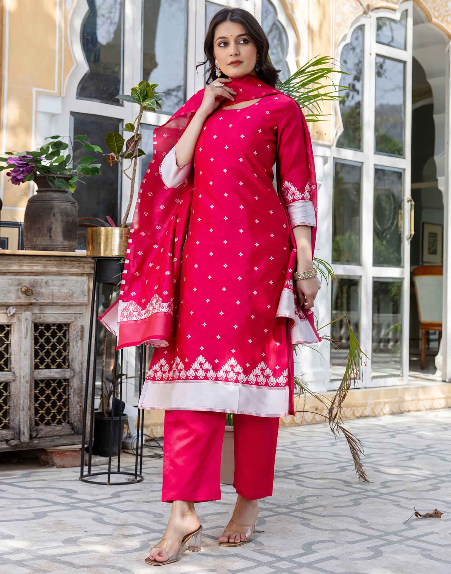Silk Blend Weaving Straight Kurta with Pant & Dupatta