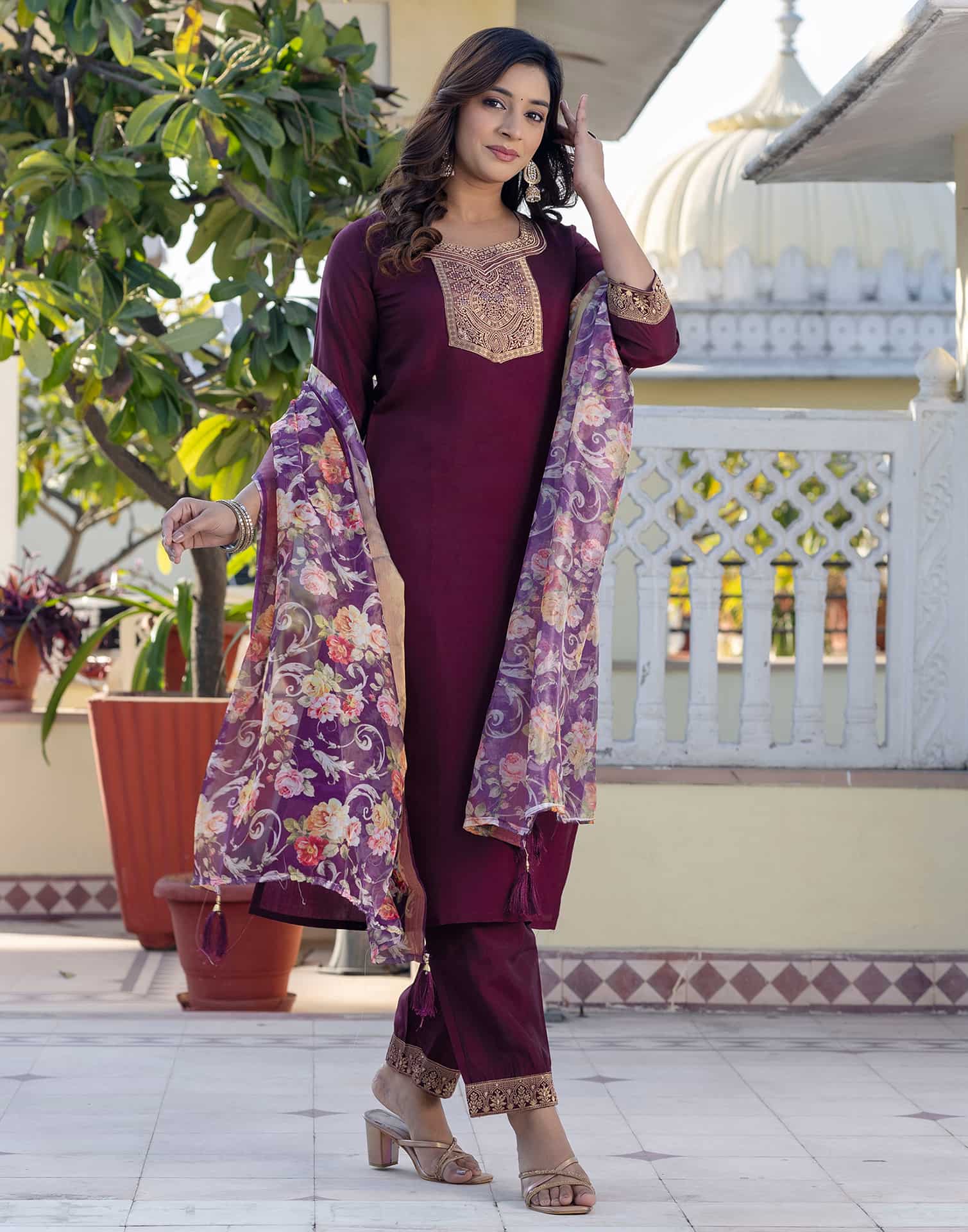 Silk Blend Weaving Straight Kurta with Pant & Dupatta