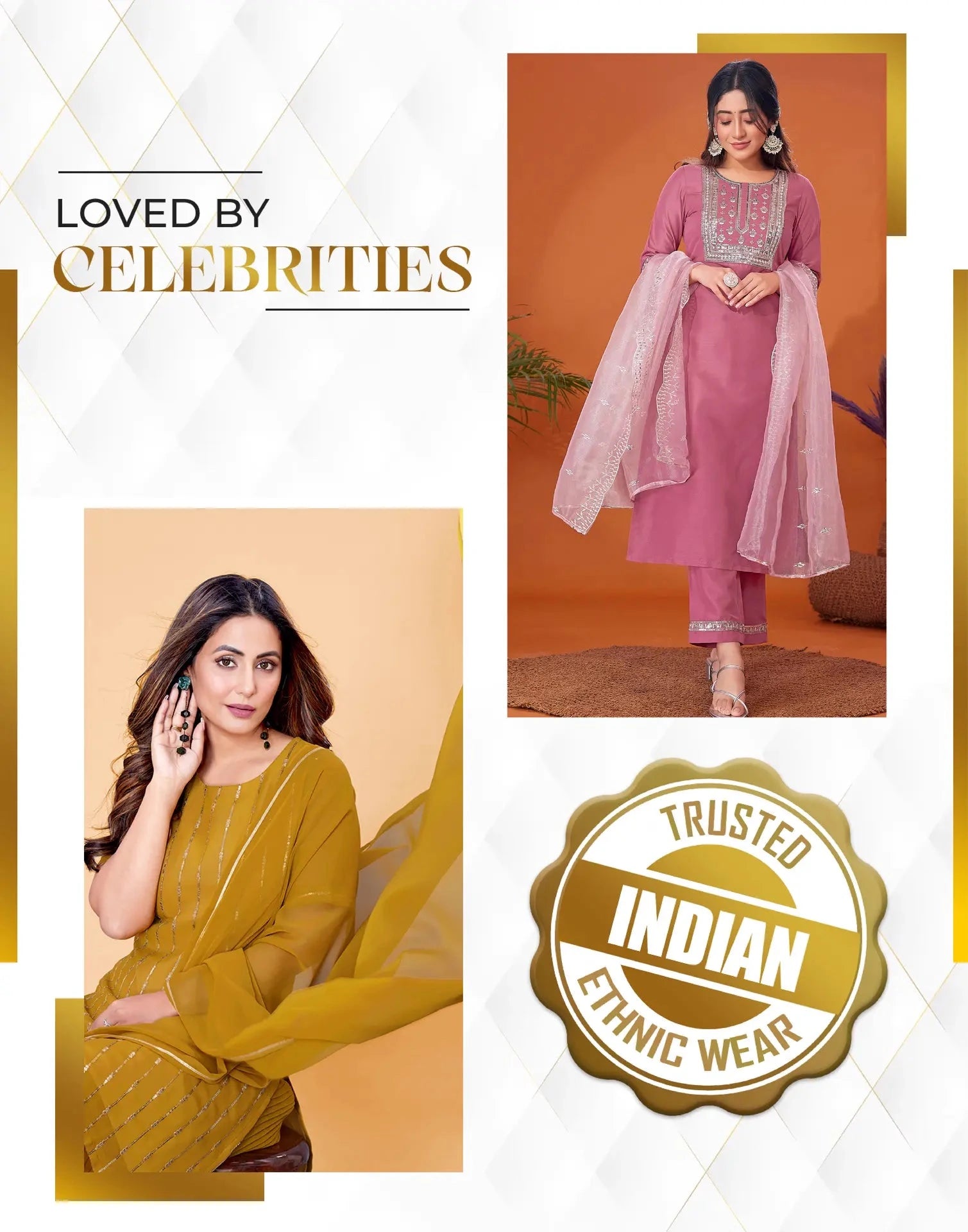 Silk Embroidered Straight Kurta with Pant & Dupatta