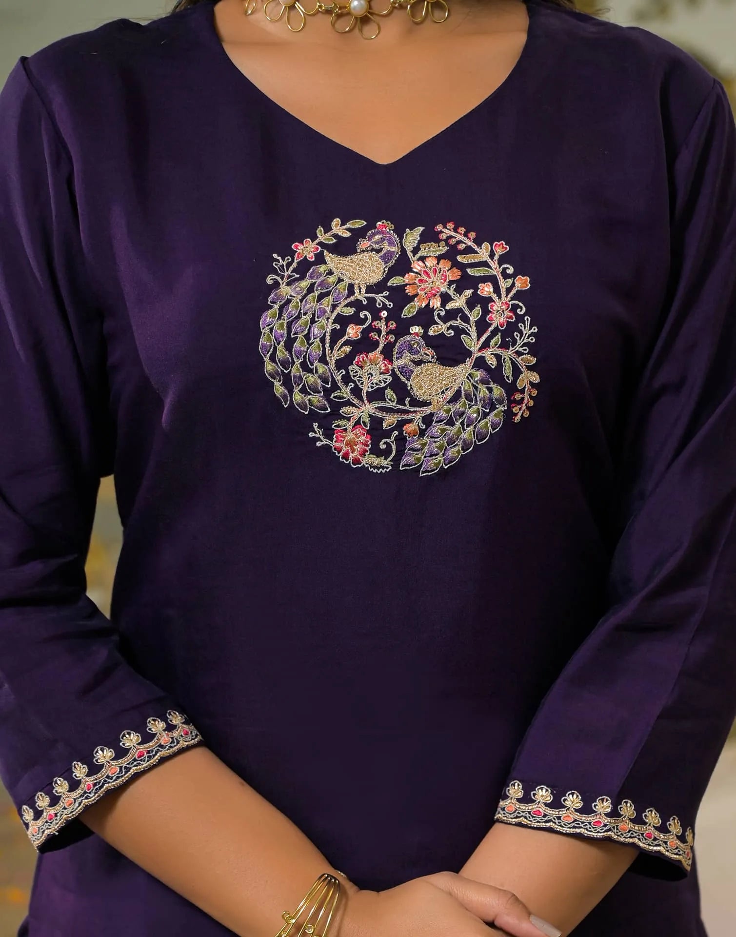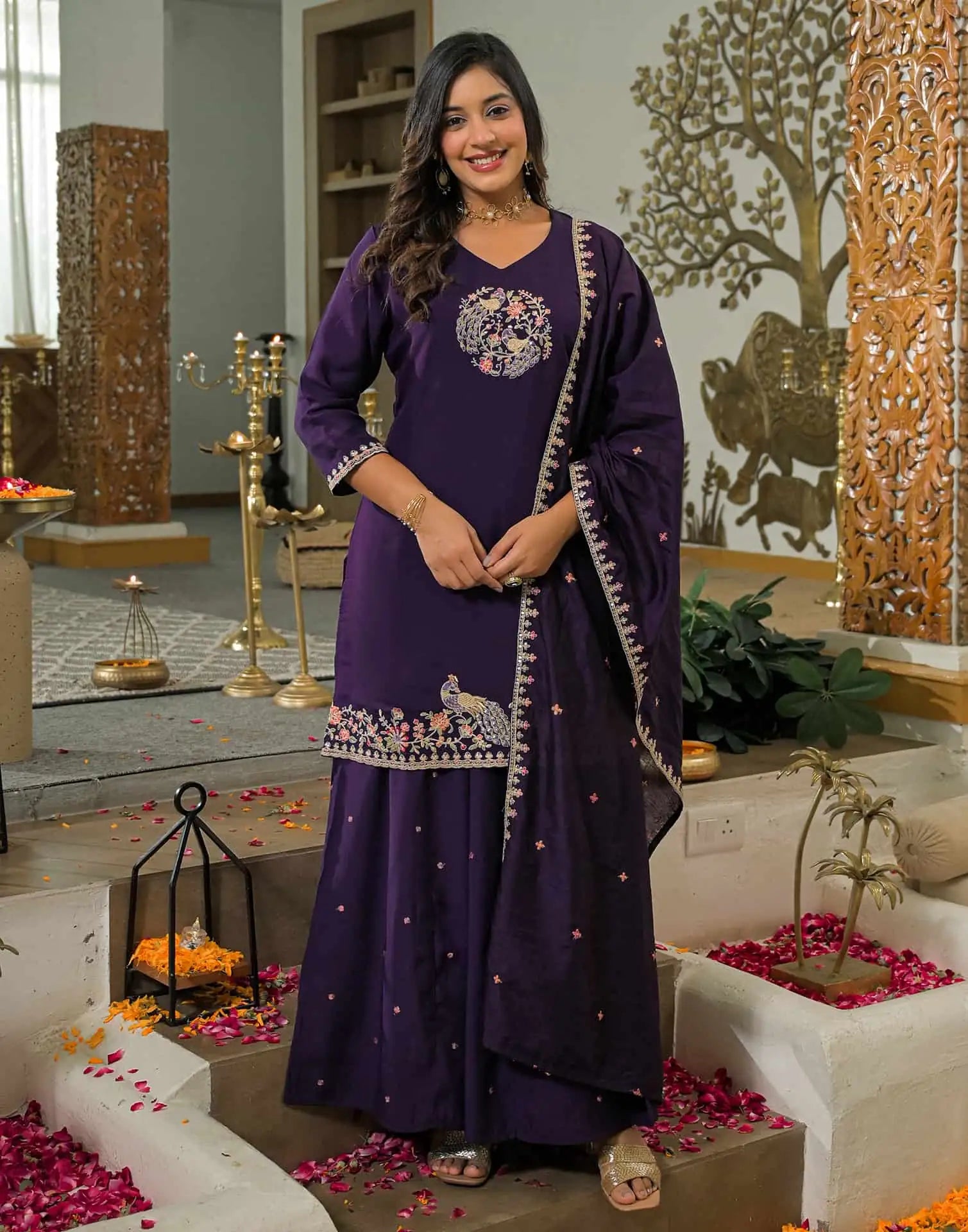 Silk Embroidered Straight Kurta with Pant & Dupatta