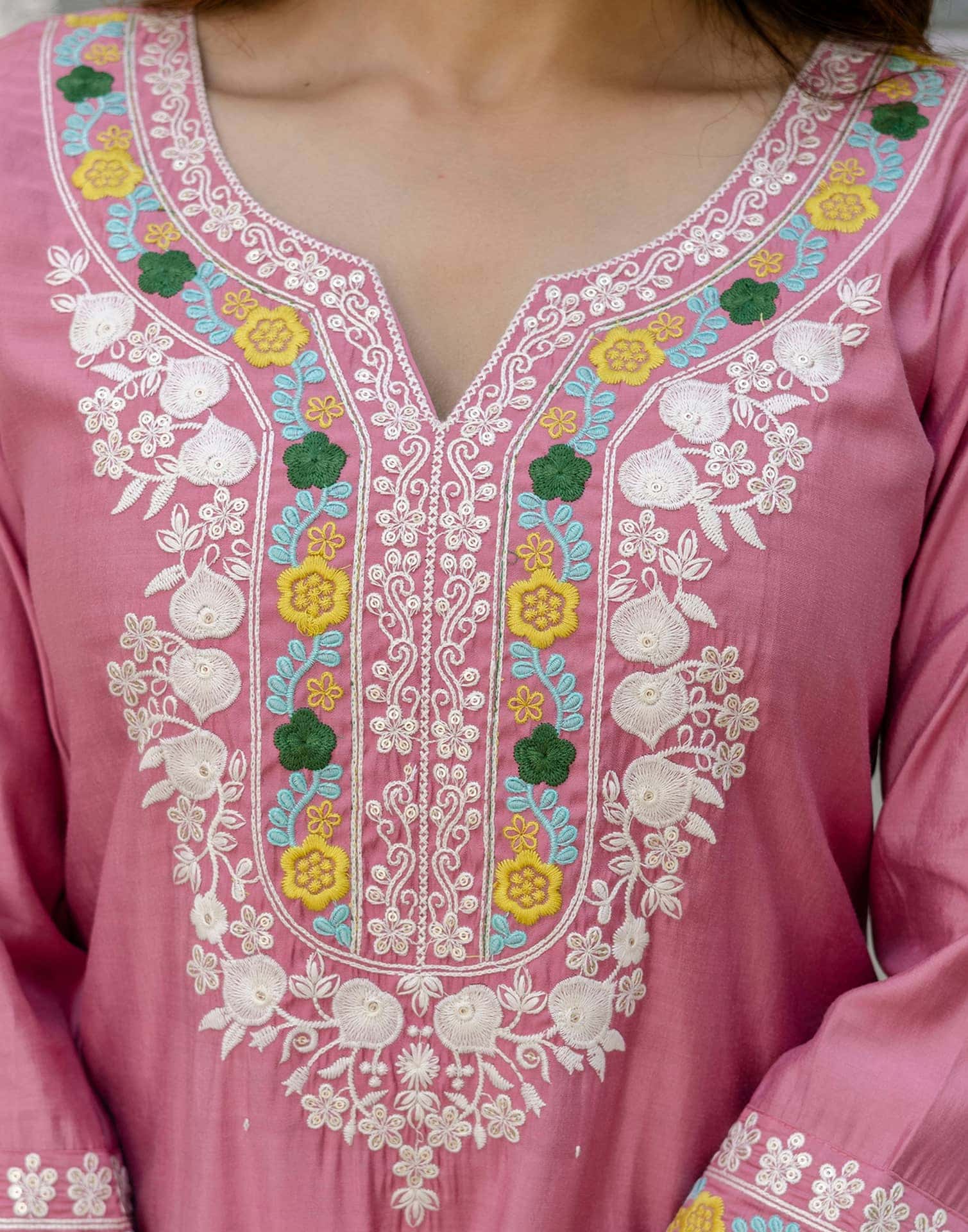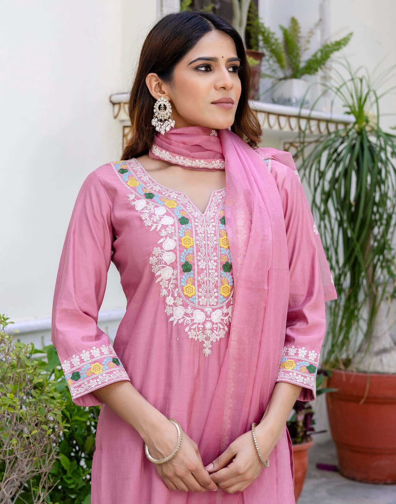 Silk Embroidered Straight Kurta with Pant & Dupatta