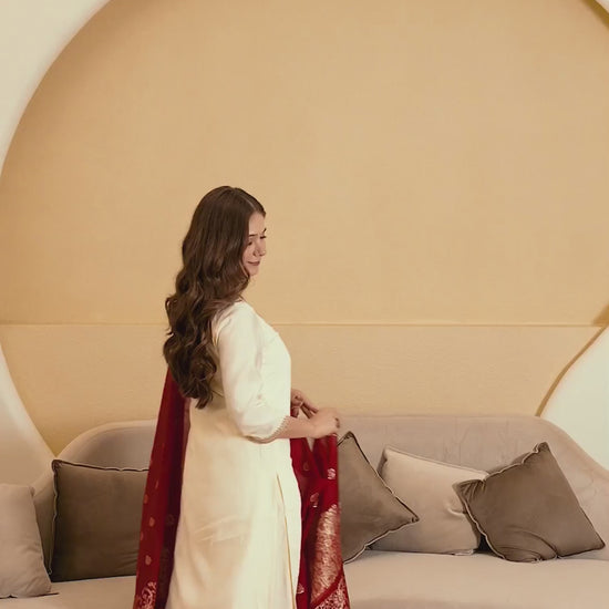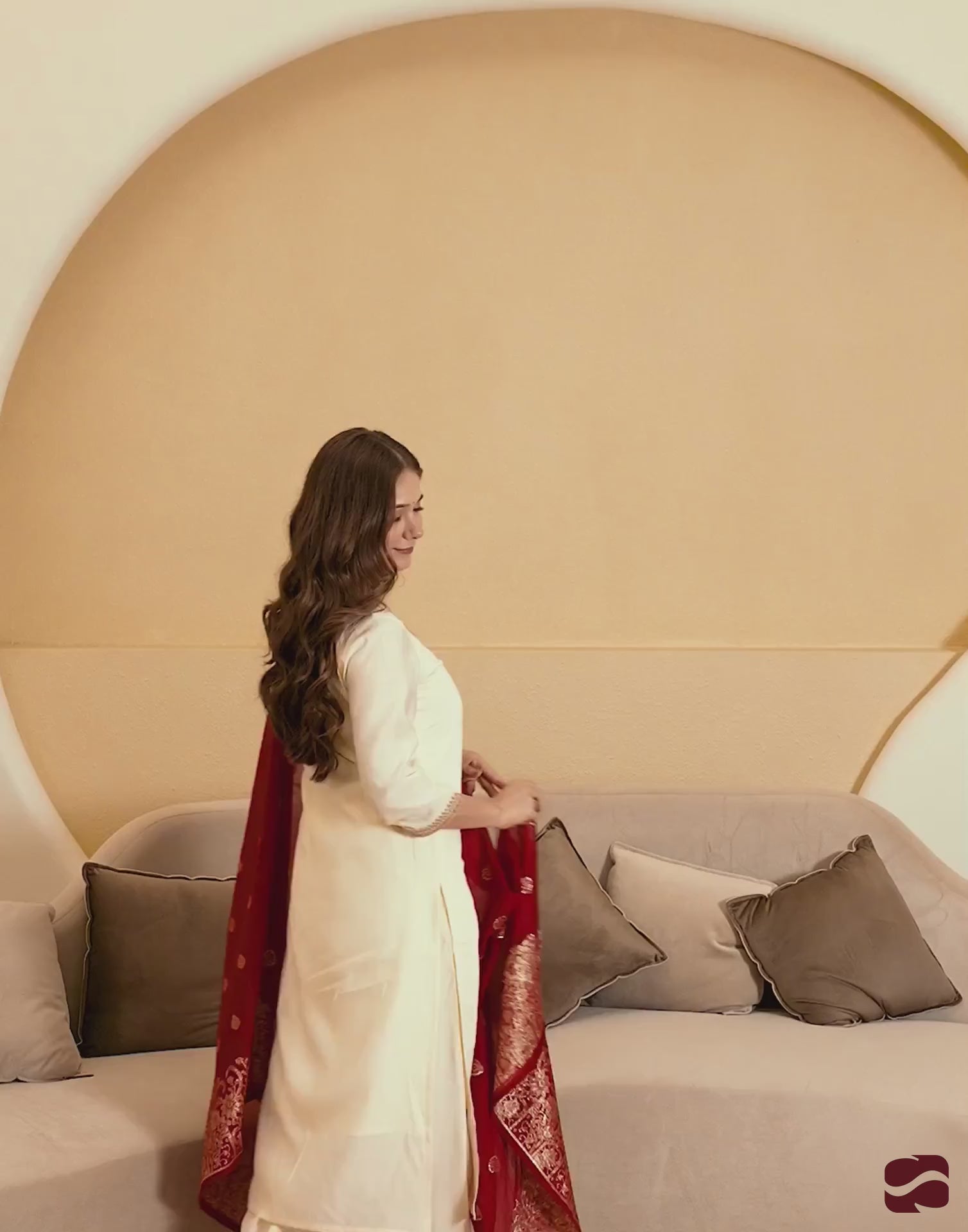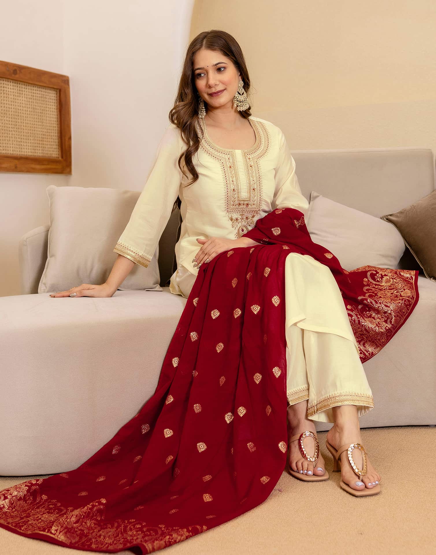 Silk Embroidered Straight Kurta with Pant & Dupatta