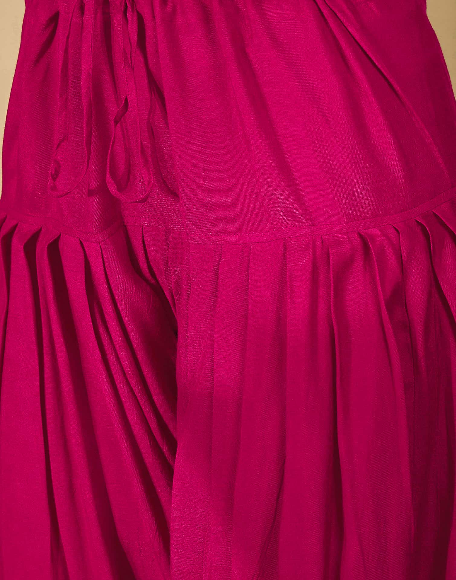 This Rani Pink Silk kurta set with Embroidery And Sequins Work is crafted for women who love Indian wear with a modern twist. The kurta’s Round Neck and graceful cut enhance its style, while Palazzo and dupatta complete the ensemble. Designed for Wedding Wear, it promises high-quality fabric, ease of movement, and lasting appeal. Family Function Wear, All-day Comfort, Breathable Kurta.