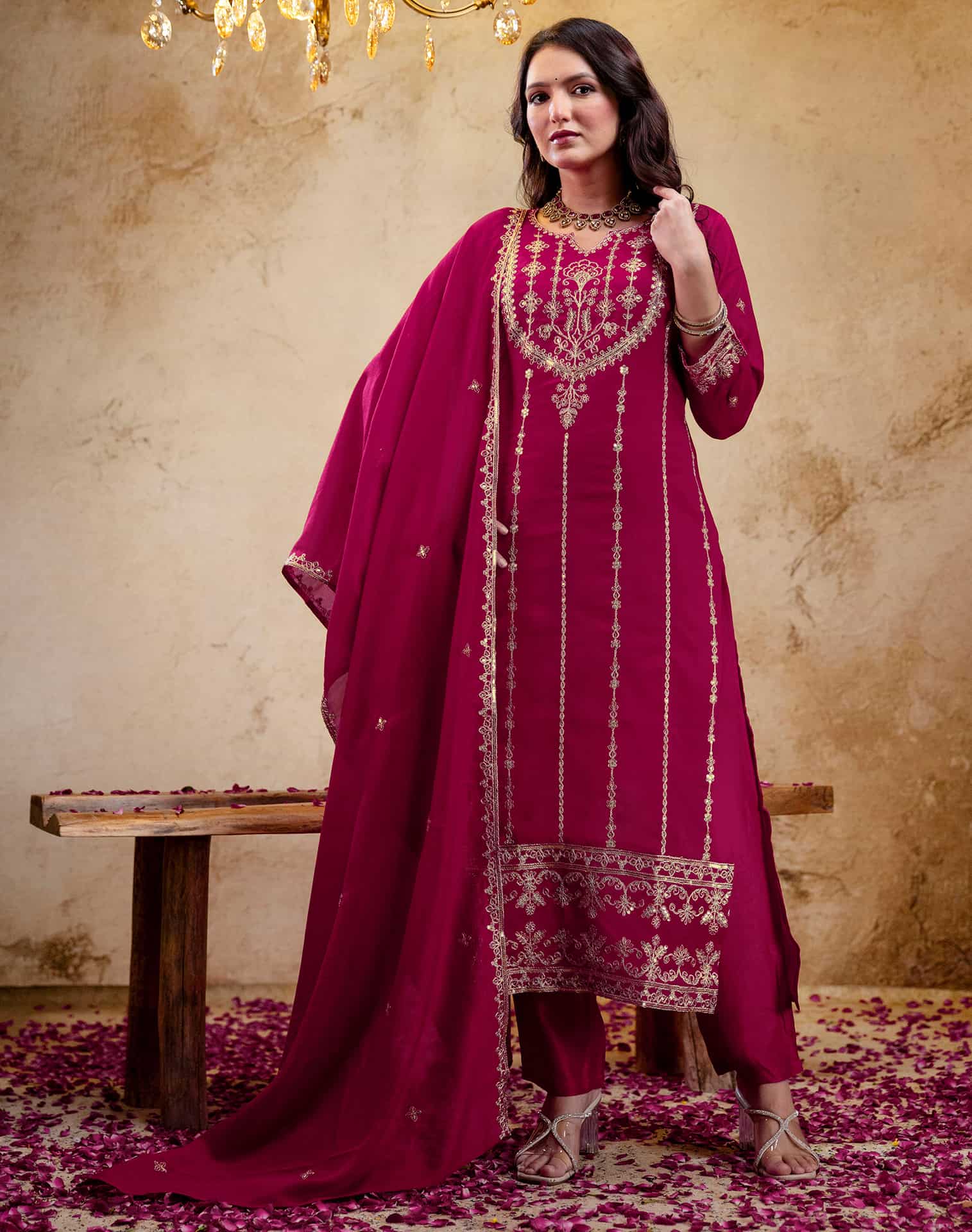 Experience the beauty of tradition with this Pink Silk kurta set. Adorned with Embroidery And Sequins Work and styled with a Round Neck, the kurta exudes sophistication. Complemented with Pant and an elegant dupatta, this complete outfit is ideal for Wedding Wear. Crafted in India with high-quality fabric, it ensures comfortable wear and effortless elegance. All-day Comfort, Breathable Kurta, Ethnic Wear for Women.