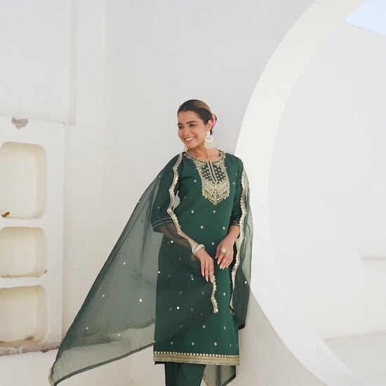 Silk Embroidery, Sequins Work and Gota Lace Straight Kurta with Pant & Dupatta