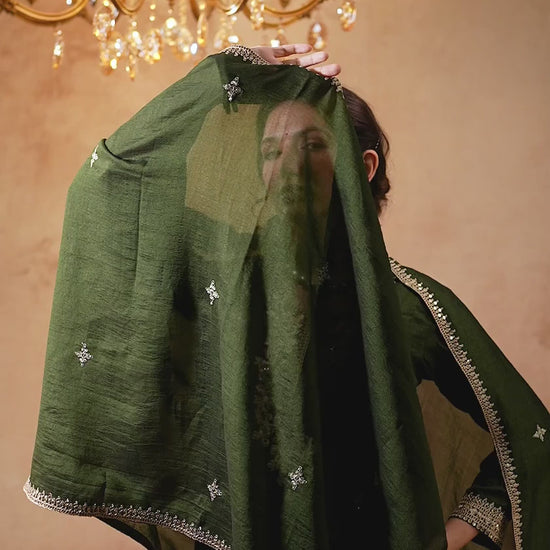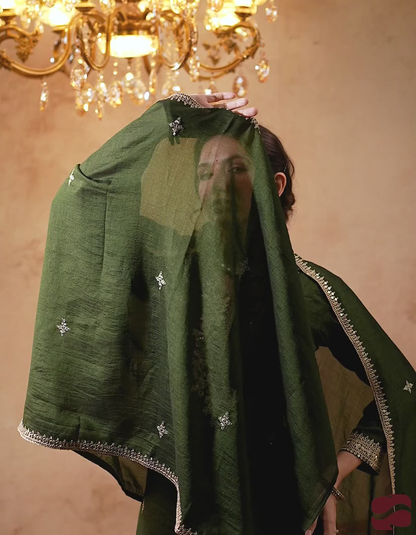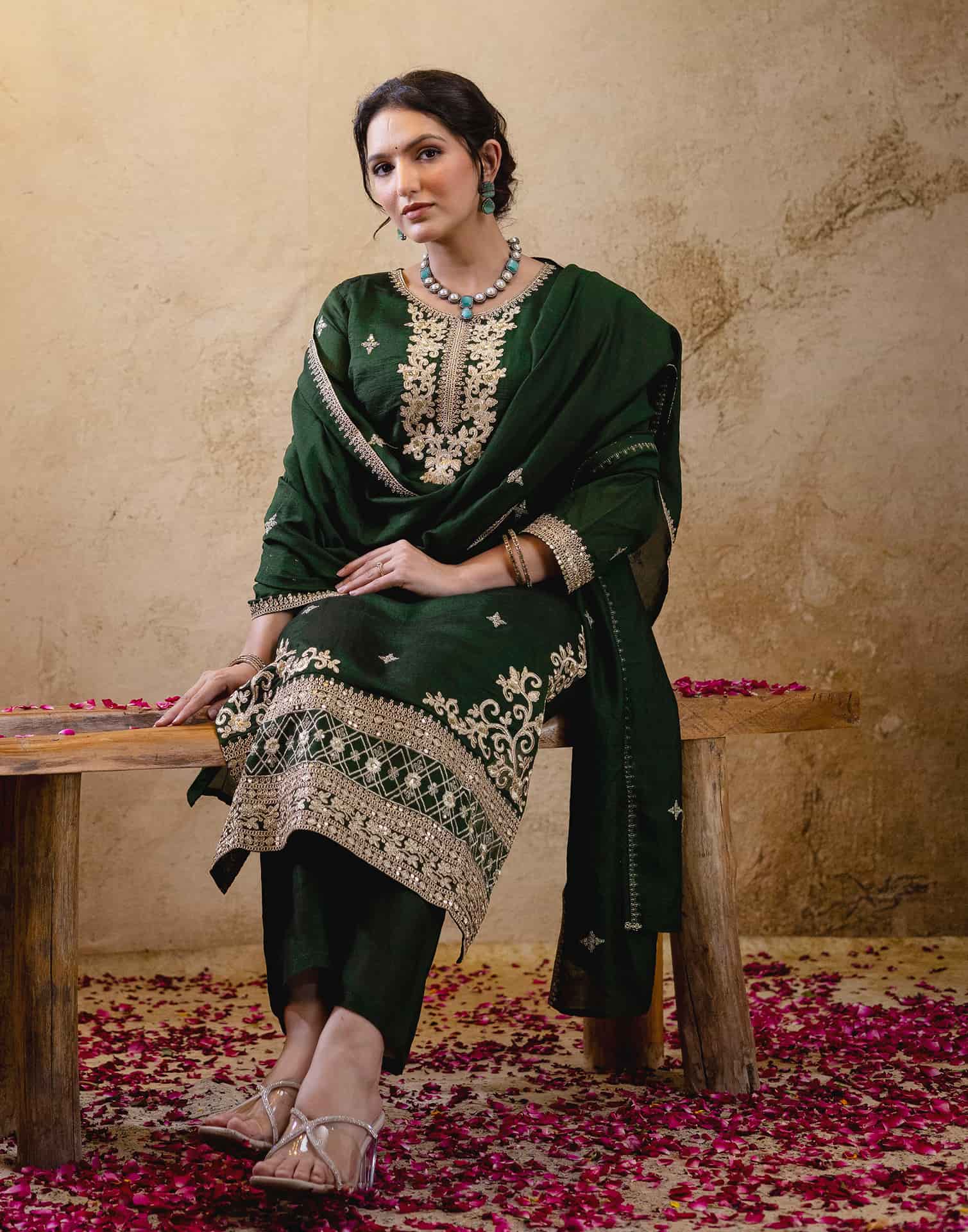 Silk Straight Embroidery Round Neck Kurta with Pant & Dupatta