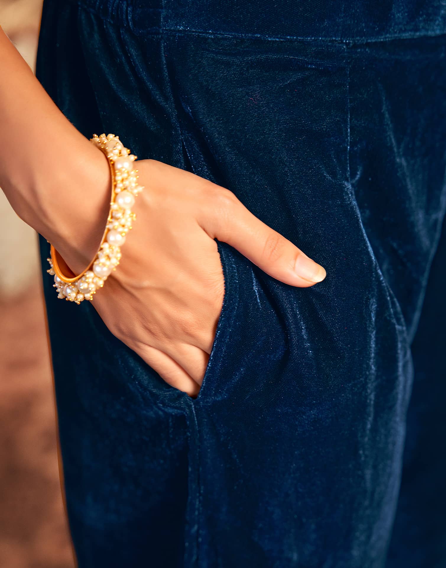 Step into sophistication with this Rama Blue Velvet kurta set adorned with Plain. The kurta features a Round Neck for a refined look, paired with Pant and dupatta. Perfect for Festive Evening Wear, it delivers all-day comfort, high-quality fabric, and effortless style. Indian Wear, Complete Kurta Set, Everyday Wear.
