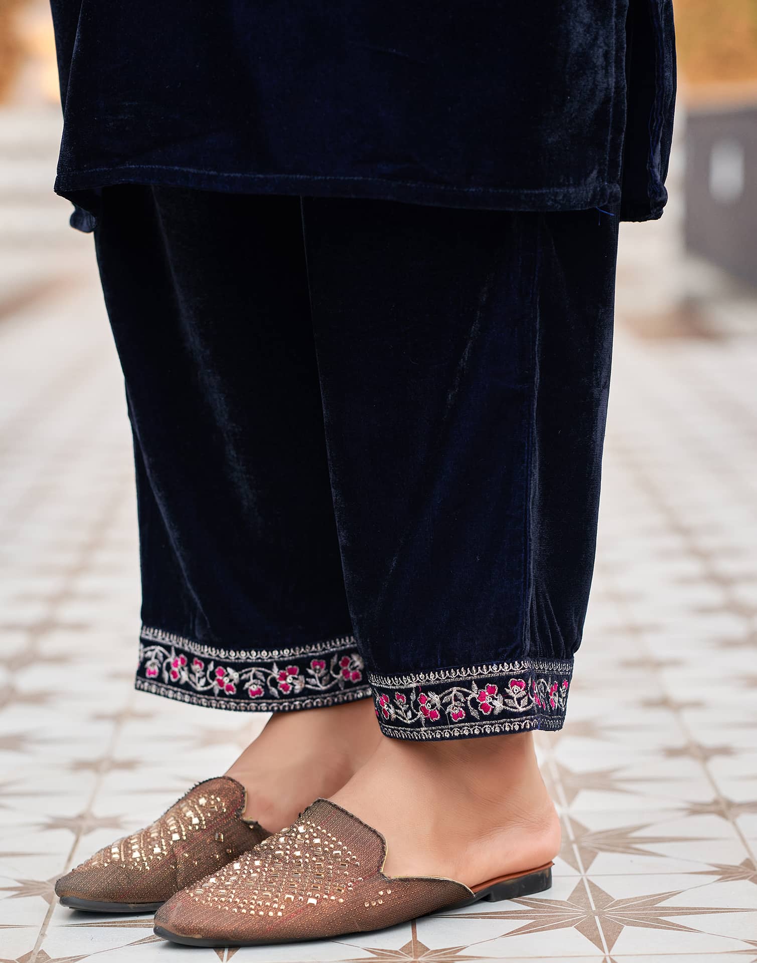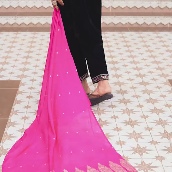 Velvet Dyed, Sequins, Embroidery and Lace Straight Kurta with Pant & Dupatta