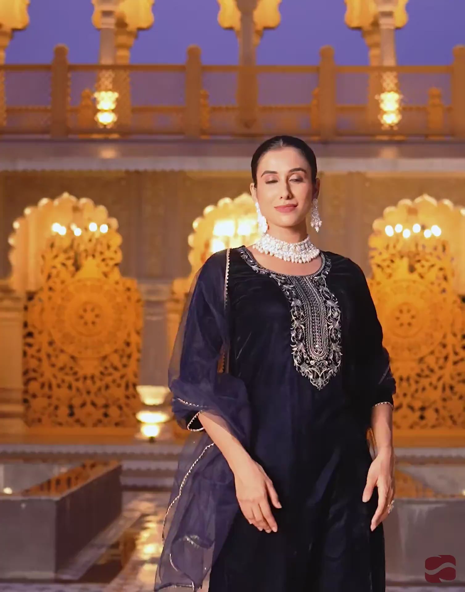 Velvet Sequins, Embroidery and Gota Lace Straight Kurta with Pant & Dupatta